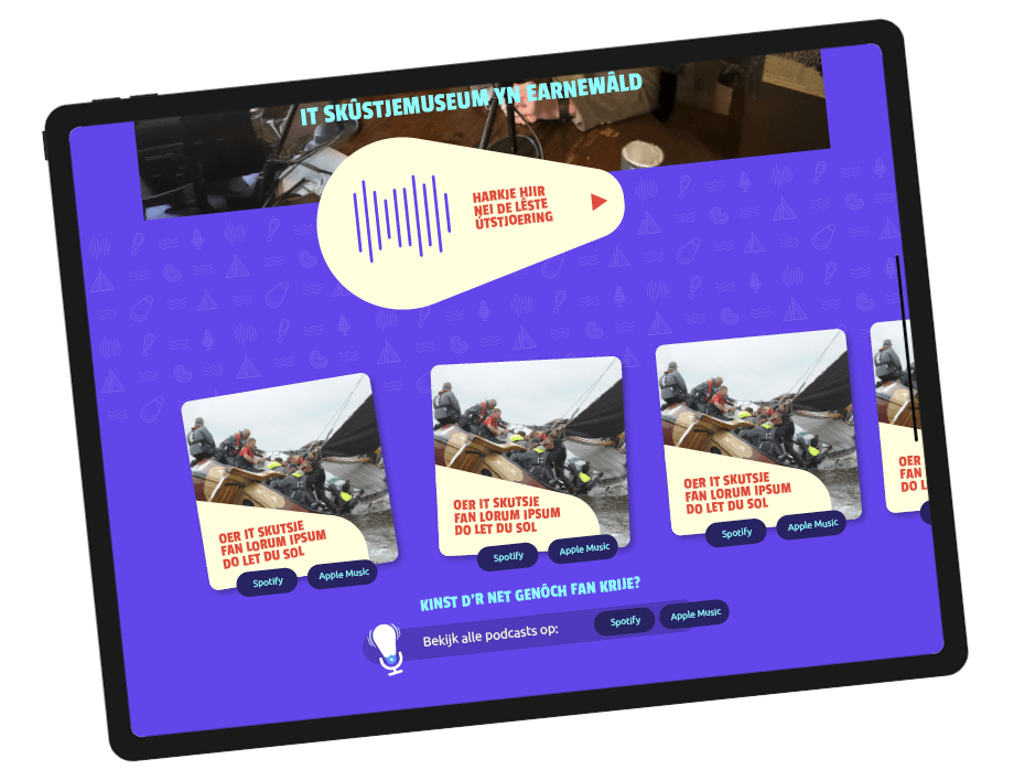 Voor de podcast ontwikkelden wij het volledige visuele pakket: van logo tot beeldmateriaal en consistente vormtaal, waardoor de podcast een herkenbare en eigen uitstraling kreeg.